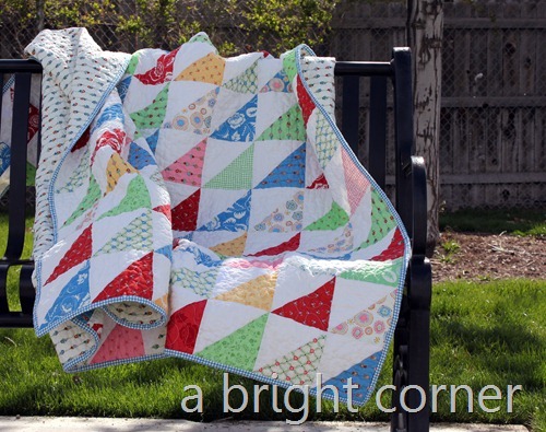 I love the quilt! The colours are so bright and fresh. Can't wait to see what the crib bumpers and pillow look like =D