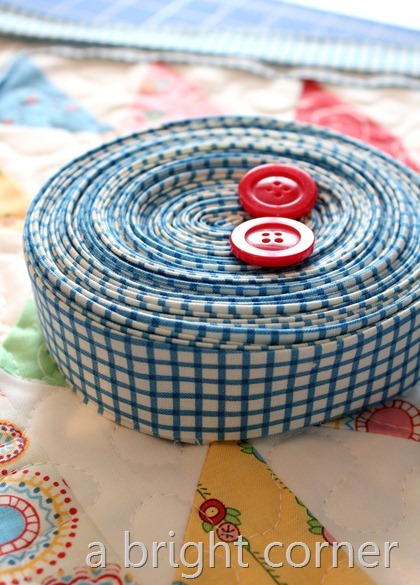 I was able to track down the same blue checked binding (love it!) and a charm pack from the same line (Basket of Flowers by Mary Engelbreit). They were not easy to find!