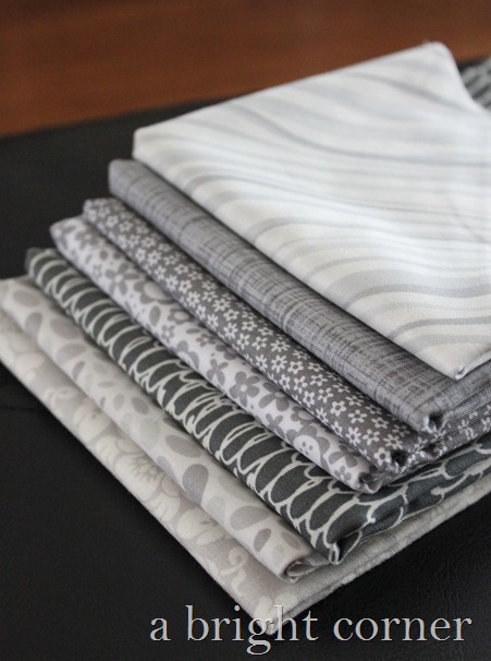 Lately I’ve been on the hunt for some great gray fabrics.  I needed some gray to finish a project a couple of weeks ago and all I had in my closet was one small piece – less than a FQ.  I was surprised – I feel like I’ve been sewing a lot with gray lately – but when I thought about it I realized that I mostly just use solid gray (Kona Ash.)